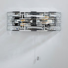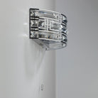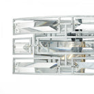 SEVILLE - a beautiful wall light fashioned out of delicately curving crystal lozenges set in a polished chrome frame. With a distinct mid century feel this beautiful and generously sized light has 2 x E27 lamp holders and gives out a beautiful light.