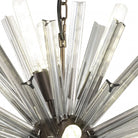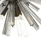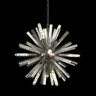 The Syrah collection presents an intriguing glass shape moulded into a three dimensional triquetra. The grooves along each sized glass create an appealing optical effect which is effortlessly enhanced with the use of tubular lamps. The wide variety of fixtures available in this range span from a 6 light semi flush to an impacting 32 light pendant. The complementing wall lamps available allow for further application built around the same lighting family. Each frame can be chosen with either a brown oxide, polished nickel or matt black frame with either clear, champagne gold or smoke glass.