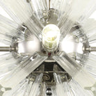 The Syrah collection presents an intriguing glass shape moulded into a three dimensional triquetra. The grooves along each sized glass create an appealing optical effect which is effortlessly enhanced with the use of tubular lamps. The wide variety of fixtures available in this range span from a 6 light semi flush to an impacting 32 light pendant. The complementing wall lamps available allow for further application built around the same lighting family. Each frame can be chosen with either a brown oxide, polished nickel or matt black frame with either clear, champagne gold or smoke glass.