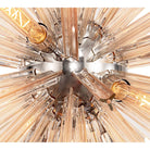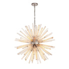 The Syrah collection presents an intriguing glass shape moulded into a three dimensional triquetra. The grooves along each sized glass create an appealing optical effect which is effortlessly enhanced with the use of tubular lamps. The wide variety of fixtures available in this range span from a 6 light semi flush to an impacting 32 light pendant. The complementing wall lamps available allow for further application built around the same lighting family. Each frame can be chosen with either a brown oxide, polished nickel or matt black frame with either clear, champagne gold or smoke glass.