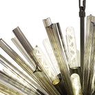 The Syrah collection presents an intriguing glass shape moulded into a three dimensional triquetra. The grooves along each sized glass create an appealing optical effect which is effortlessly enhanced with the use of tubular lamps. The wide variety of fixtures available in this range span from a 6 light semi flush to an impacting 32 light pendant. The complementing wall lamps available allow for further application built around the same lighting family. Each frame can be chosen with either a brown oxide, polished nickel or matt black frame with either clear, champagne gold or smoke glass.