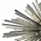 The Syrah collection presents an intriguing glass shape moulded into a three dimensional triquetra. The grooves along each sized glass create an appealing optical effect which is effortlessly enhanced with the use of tubular lamps. The wide variety of fixtures available in this range span from a 6 light semi flush to an impacting 32 light pendant. The complementing wall lamps available allow for further application built around the same lighting family. Each frame can be chosen with either a brown oxide, polished nickel or matt black frame with either clear, champagne gold or smoke glass.