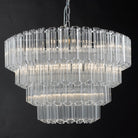 Elegant design with graceful style; the theatrical Tuvalu from Dar Lighting is a charming statement piece that’s resonant with the Art Deco period. Dressed with over 100 pieces of tubes of heavy fluted glass cut at angles to soften the outline, the Tuvalu is an impressive 4 tiers, illuminated by 9 lights. With a long chain, you could hang this impressive light in a double height room or stairwell for all round oohs and aahs.