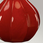 Upton is a vibrant Red glaze on a gourd shaped ceramic vase. Completed with a White faux linen cylinder shade and Polished Nickel finial.