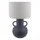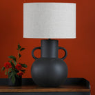Introducing the Urn Ceramic Table Lamp Black – a contemporary reinterpretation of Greek urns that seamlessly merges tradition with modern aesthetics. Crafted with meticulous attention to detail, this terracotta table lamp boasts a tactile black finish that exudes tactile charm. Its dark tones and elegant form are complemented by a minimalist ivory shade, creating a harmonious balance between dramatic design and sleek sophistication.