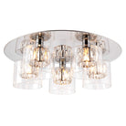 High quality clear crystals adorn this deluxe chrome plated ceiling flush, striking and perfect for low ceilings, crystal shades are enclosed by beautiful clear glass diffusers. The combination of clear crystals, polished chrome and glass create a luxurious interior decorative ceiling light.