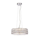 High quality clear crystals adorn this deluxe chrome plated LED contemporary pendant, fully enclosed by a beautiful prismatic glass diffuser. The combination of clear crystals, polished chrome and glass create a luxurious interior decorative light pendant. Suspended from thin wire and clear flex with integrated LED light source for bright light output. collection.