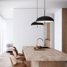 The Versale series by Anker Studio is the epitome of Scandinavian minimalism cut to the very core. A perfectly round shade with a uniform light surface only disturbed by the piercing frame. The pendant can easily set the perfect ambience for your dining area with a pleasant, glare-free light.