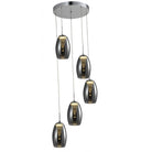 Vita 5 light round pendant with smoked glass and inner pyramid design. A large variety of fittings and sizes are available in the Vita range. Available in both smoked and clear glass