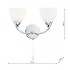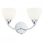 The WATSON 2lt Wall Light has opal white glass shades and polished chrome frame.