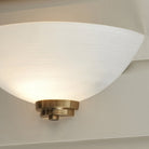The Welles wall light has a brushed aged brass finish complete with a white painted glass shade which has a faint line pattern. Other finishes and matching items are also available, all of which are suitable for use with LED lamps and are dimmable.