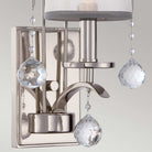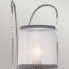 With classic design and hints of contemporary styling Whitney is a beautiful collection for your home. The Imperial Silver finish bounces the light and highlights the downward curving arms with hanging crystal accents beautifully. The white sheer organza shades are trimmed in dark grey for a sophisticated and dramatic appearance.