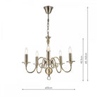Matching ceiling rose and hanging chain included, plus a discreet clear cable. Shades not needed, although you could use 13cm candle grip shades if you wish. Bulbs not included; takes 5 x 40W max SES candle. Height is adjustable at the point of installation (65–163cm).