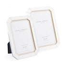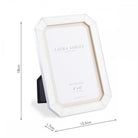 The simple, straightforward elegance of the Wren photograph frame from Laura Ashley. With a silver finish and angled corners, it features inlaid pearl-coloured panels that have a glitter effect for a subtle sparkle. Holds one photo. Free standing, for both portrait or landscape orientation. Silver-plated metal frame, glass fronted, with a black velvet backing.