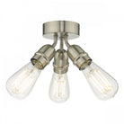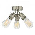 The YAO 3 Light Flush ceiling light is compact in size (diameter 18cm) but capable of providing a great light level from its 3 lamp heads. Finished in beautiful soft satin nickel with authentic vintage detailing this ceiling fitting has a great deal of character and understated style. The arms are fixed giving an all round light output and as it sits close to the ceiling it is a great option for low ceilings or where space is limited.
