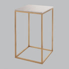 The Yarrow Side Table is a stylish and modern piece that adds a touch of sophistication to any space. Featuring an open gold boxed frame, this table exudes elegance and contemporary charm. Topped with a stunning white marble surface, it provides a striking contrast that enhances its overall design. Perfect for living rooms or hallways, the Yarrow Side Table offers both functionality and aesthetic appeal, making it an ideal spot for displaying decorative items or seEleganceing as a stylish accent piece in your home.