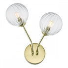 The Yiska 2lt wall light features a delicate branch like structure. The polished gold metal work is complemented by gently ribbed clear glass shades.