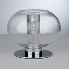Complete with polished chrome detailing and a round, mirrored base.