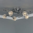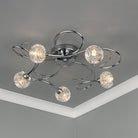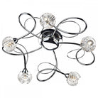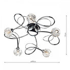 Full of ripples and swirls, the Zelda flush ceiling light will enhance any room in your home. With a bright polished chrome finish frame, the Zelda has 5 attractive clear glass shades with a rippled surface held on outwardly curving arms, each with an additional echoing arm attached, giving a scribble effect.