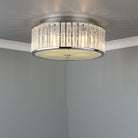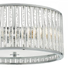 The Zeto 4 light Bathroom flush ceiling light in polished chrome, features a drum of acrylic rods, each infused with a bubble effect. This lightweight bathroom ceiling fitting has a bright polished chrome frame and includes a glass diffuser to soften the light beneath.