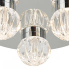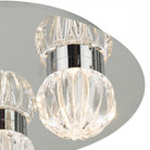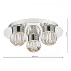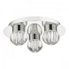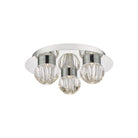 The flush Zondra ceiling light features a polished chrome finish and mirrored ceiling plate; complete with rippled glass shades and an IP44 rating.